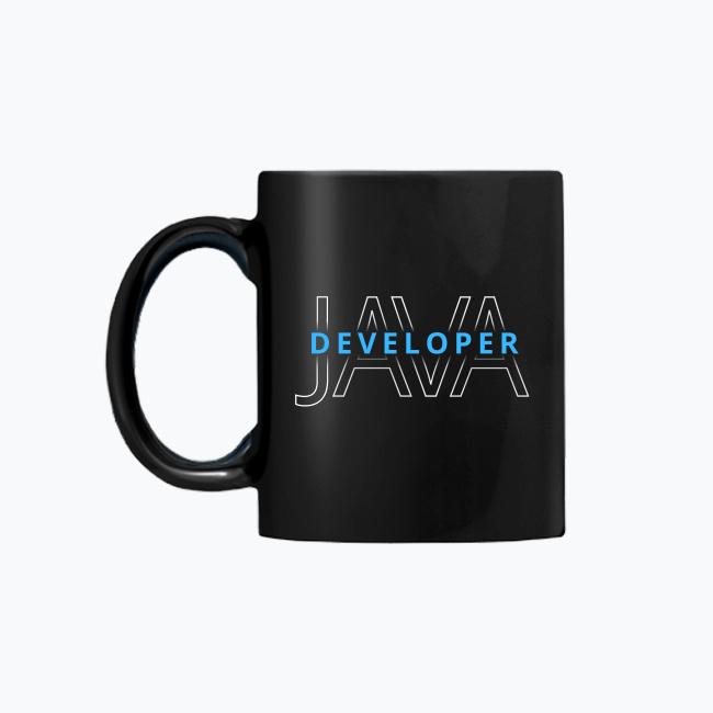 Czarny kubek Premium z autorską grafiką z kolekcji „Developer” w wersji dla programistów JAVA.