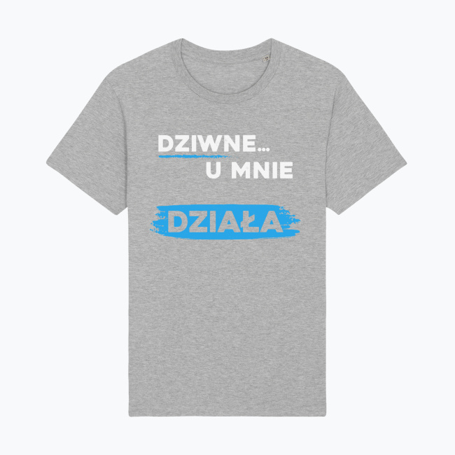 Koszulka tshirt „Dziwne u mnie działa” – szara